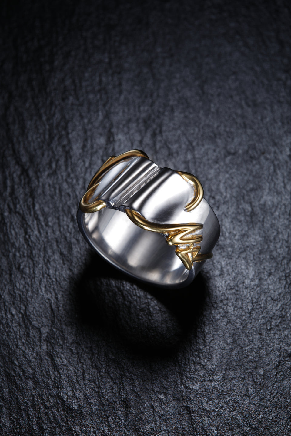 ブランドロゴを絡め込んだシルバーとゴールドのコンビリング